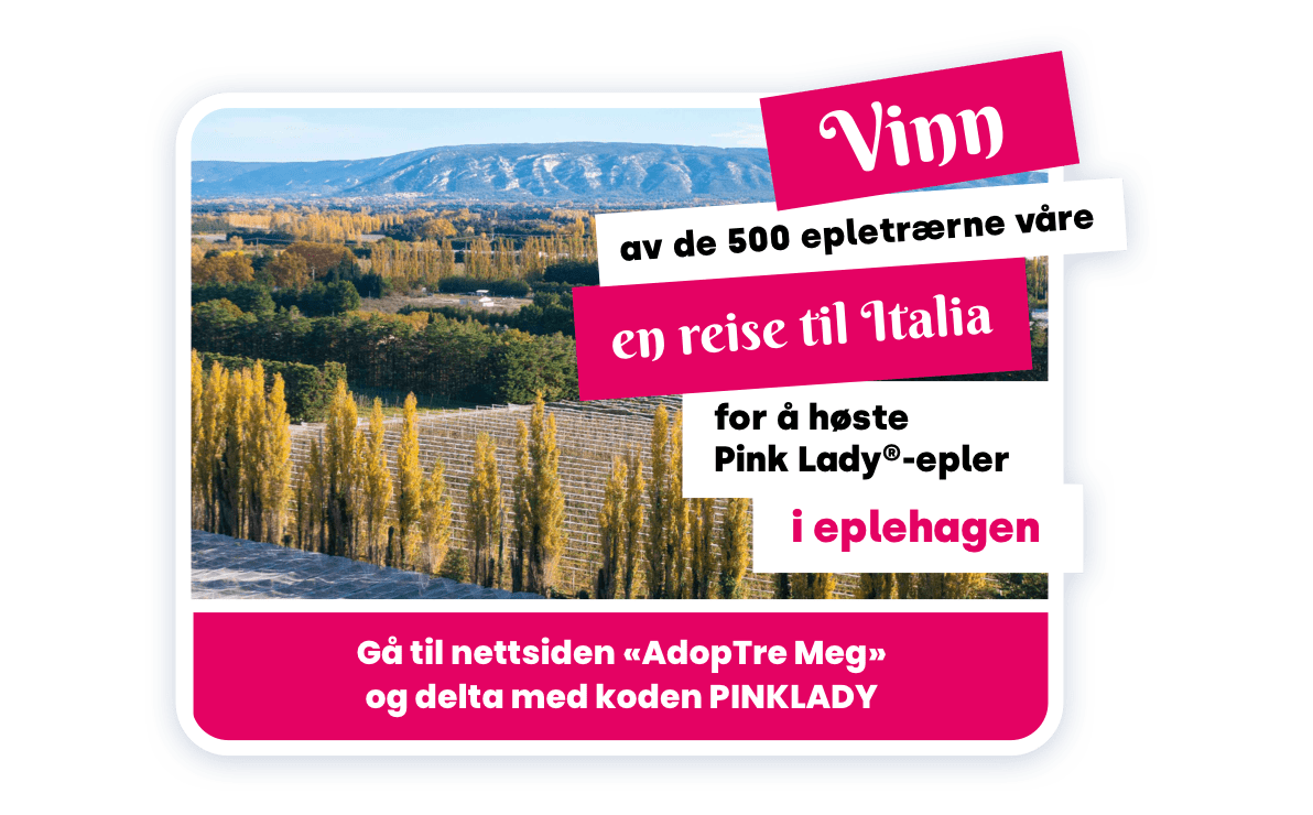 Hvis du blir valgt ut som fadder for et Pink Lady®-epletre, får du i første omgang muligheten til å følge treets utvikling gjennom livssyklusen og sjansen til å plukke eplene på treet «ditt».